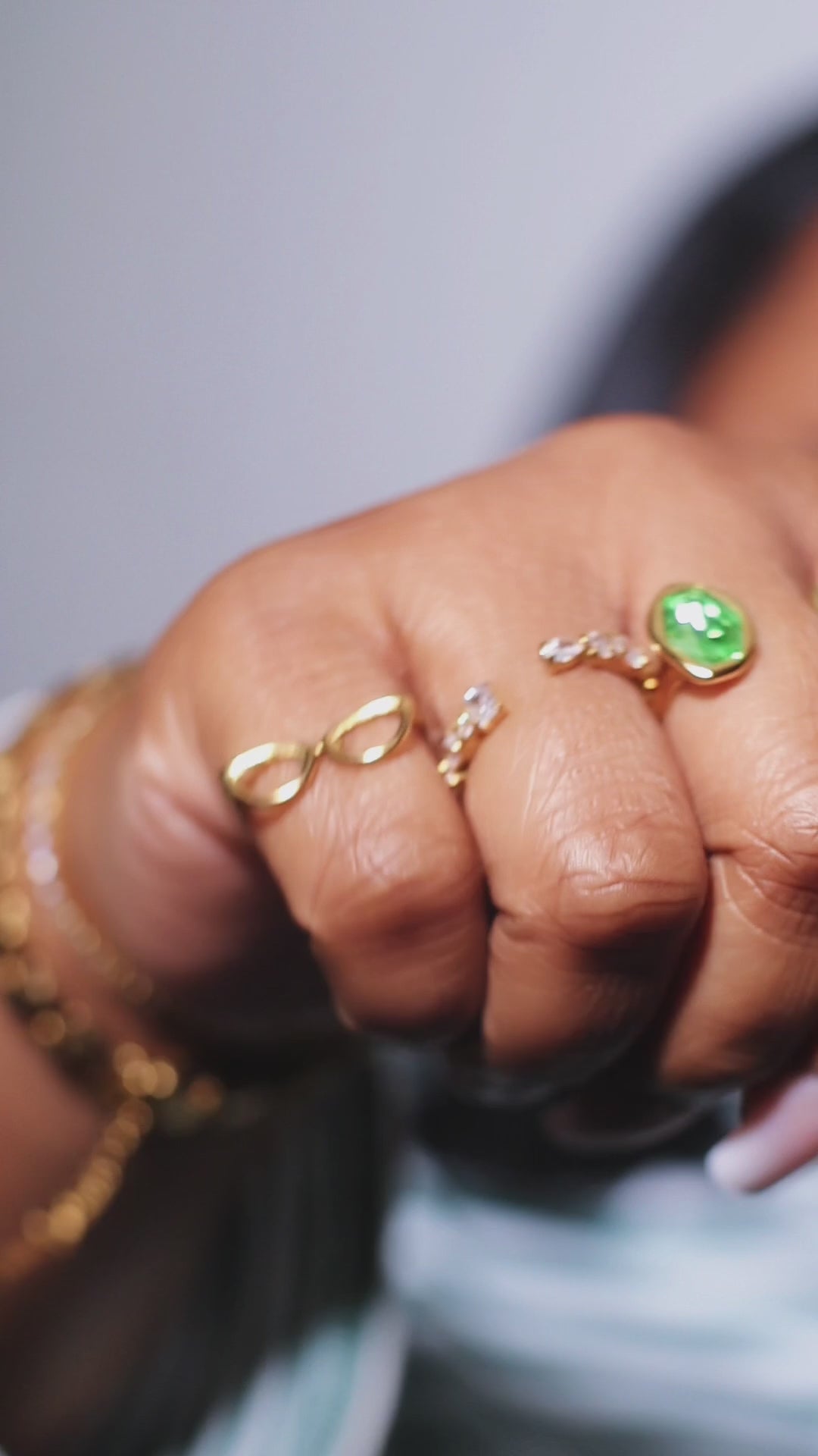 Get ready to dazzle with the Graceful Ring—your new go-to accessory for instant glamour. Featuring an eye-catching mix of sparkling stone shapes, this adjustable ring fits just right and never goes out of style. Built tough with stainless steel and finished in elegant 18k gold plating, it's the perfect blend of durability and shine that keeps up with your vibe.
