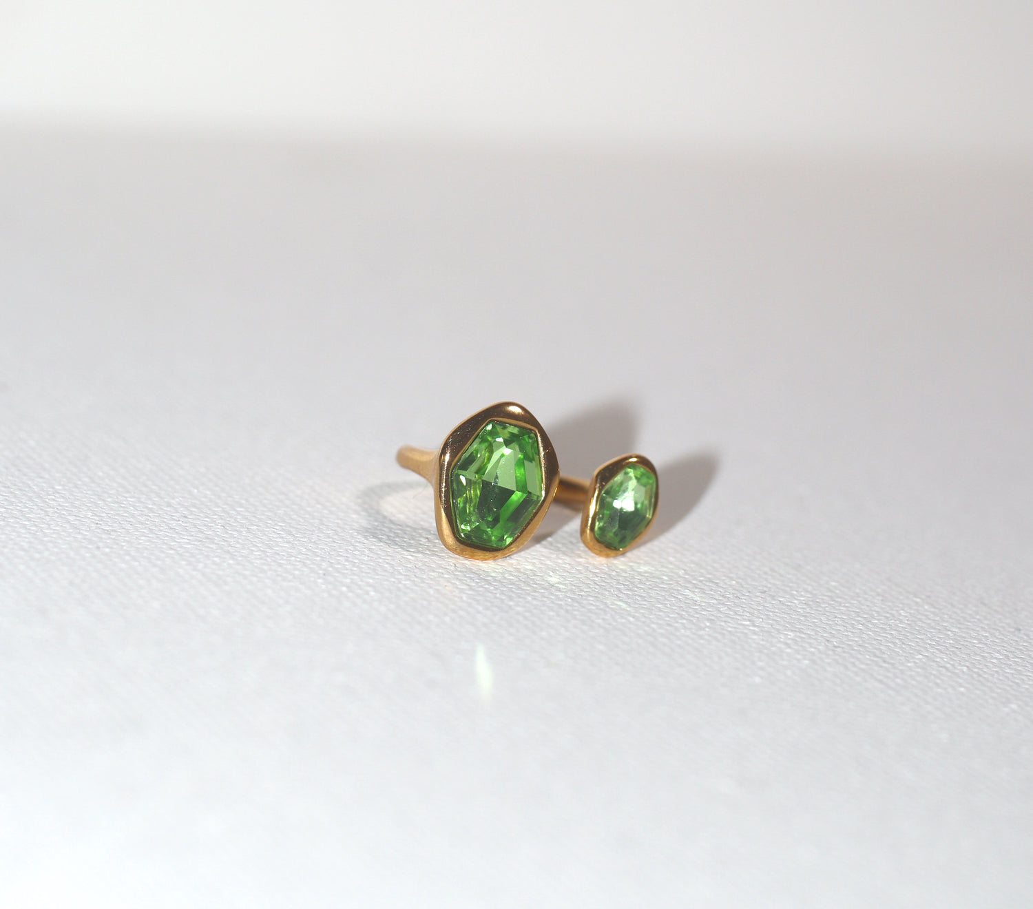 Add a pop of color and versatility to your style with our adjustable Demi Ring! Crafted from durable stainless steel and plated with luxurious 18k gold. Elevate any outfit and express your unique taste with this chic and eye-catching accessory.